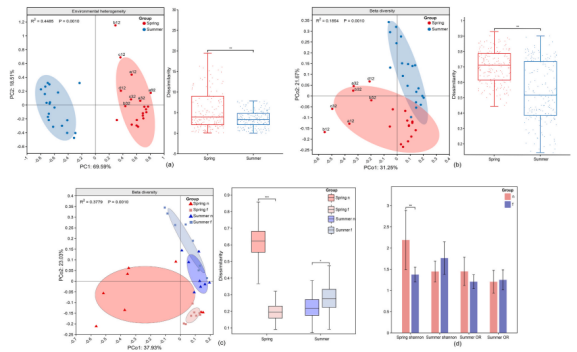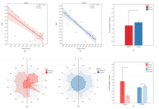 此项研究以长江口近岸海域为研究区域,于2022年春季和夏季采集浮游动物样本,采用宏基因组与人工鉴定相结合的方式,对浮游动物群落多样性,共生网络稳定性以及群落内聚力进行了分析,以探究物种内相互作用在群落结构变化中发挥的作用。